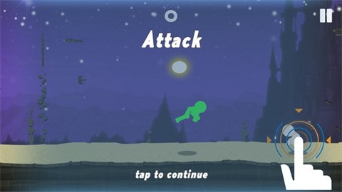 4、我们需要在游戏当中通过点击屏幕来控制火柴人的角色,进行上下的跳跃和飞踢等各种动作。