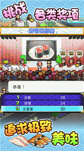 5、在海鲜寿司故事无限寿司币版游戏中,有各种经营方式等着你尝试,还有各种寿司比赛等着你参加。