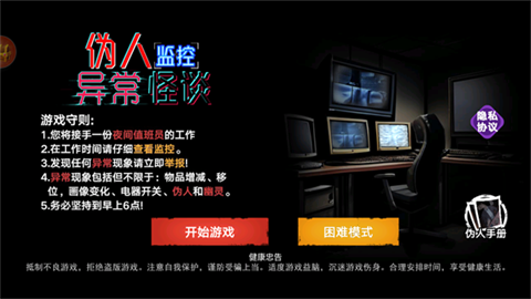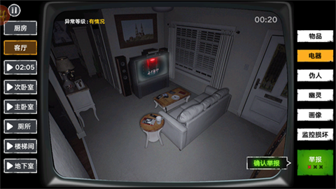 玩家的任务是监视一座房子,房内会不断发生各种异常事件。玩家需要在异常情况出现时迅速发现并举报,以清除这些异常。只要坚持到六点,玩家即可获得胜利。伪人监控异常怪谈这款游戏考验玩家的观察力和反应速度,感兴趣的玩家可以尝试挑战,看看自己能否成功坚持到最后。