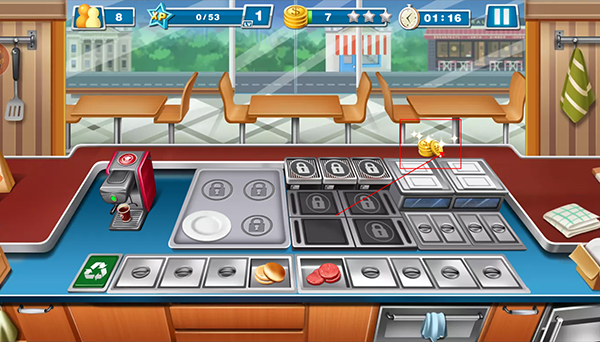 3、利用游戏中获得的经验和金钱来升级你的设备,购买更多种类的食材,逐步扩大餐厅的规模。(具体操作请查看下方视频)