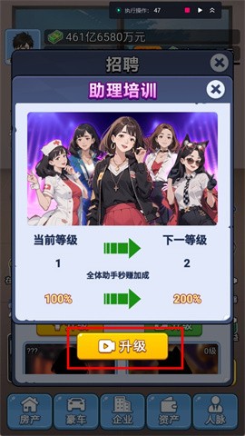 1、玩家可以雇佣漂亮的秘书,获得丰富的创业奖励。