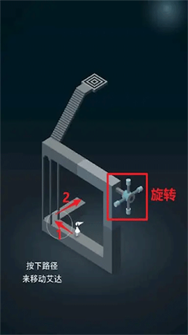 3、让艾达走到左侧,接着旋转深灰色机关,如此便组成一条完整道路,艾达能够直接走向洞口。