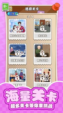 我不做选择旨在为用户提供适合所有玩家打发时间的益智游戏,海量的关卡设计,每个关卡都是全新的主题和场景,保证了玩家体验的新鲜感。游戏以换装为核心玩法,玩家需要根据关卡给出的限制条件为主角搭配服装来解决问题,独特的计分系统增加了游戏的挑战性,注意时间限制,尝试多种组合,开阔思路。