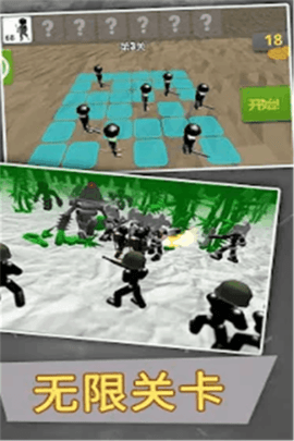 士兵个性化:游戏中的火柴人士兵不仅可以更换阵型,还能进行皮肤更换,增加个性化元素。