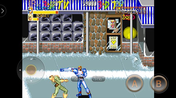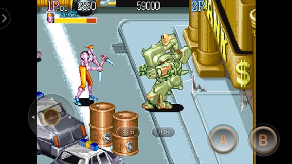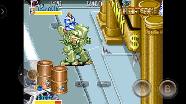 1、完成名将街机游戏联机版的安装后,先点击“投币”,然后点击“开始”进入游戏。
