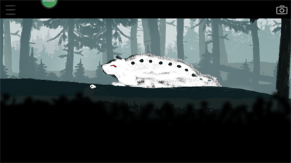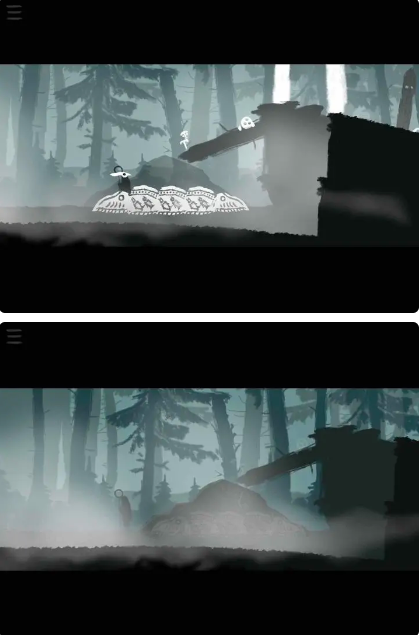 3、抵达存档点后,熊会开始追击。此时需根据地形灵活切换阴阳眼,迅速穿越森林以逃脱追捕。跳下高崖后,可在左侧发现一个收藏品。