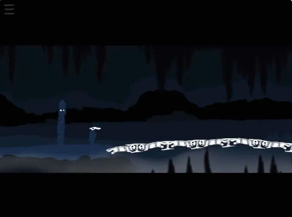 5、上到高处后,会发现另一段由蠕虫构成的木桥。开启阴眼,将蠕虫引导至断崖边缘,再切换回阳眼,便可安全通过断崖。