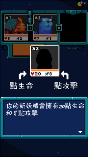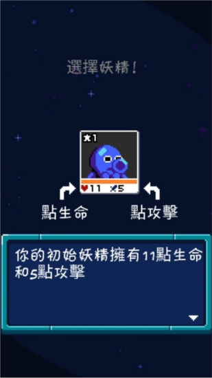 1、游戏开局将随机分配一只妖精伙伴,不同妖精的初始生命与攻击属性存在差异。
