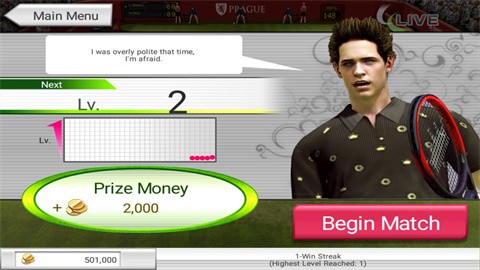 网球挑战赛是一款模拟网球对战的竞技游戏,游戏主要内容是世界巡回赛,玩家必须不断竞争才能提高排名并获得奖金,最终在前50名中脱颖而出成为世界冠军。此外还有三种表演比赛、多人比赛和练习模式,更适合在空闲时间玩,这个游戏可能要花很长时间。