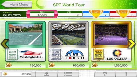 2、前往18个不同国家的场馆,与50位世界顶级选手竞争,感受前所未有的网球魅力。