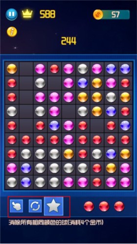 消除一类:消除所有颜色相同的球(消耗4个金币)