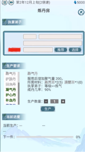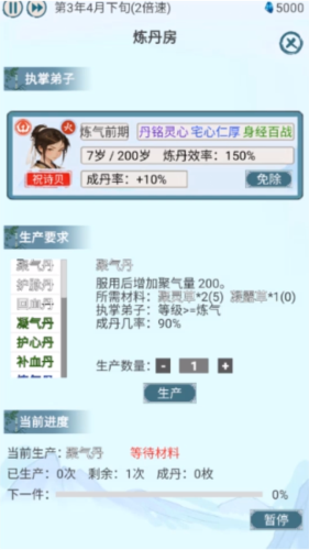 开局可以招募一些低品质弟子用于挖矿和采集森林资源,这是前期重要的灵石来源。