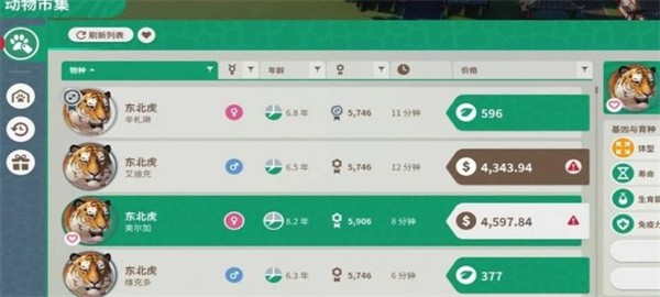 2、在动物交易界面,你可以自由筛选动物,找到心仪的动物后点击它。