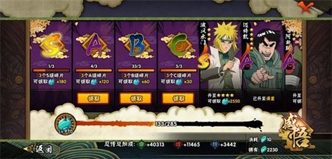 一个高品质的忍者能够显著提升玩家的战力。即使是同为C级忍者,1星和2星登场的效果也完全不同,高级忍者的登场全属性加成更高。玩家需要注意收集忍者碎片,提升忍者的星级,并招募高品质的忍者。