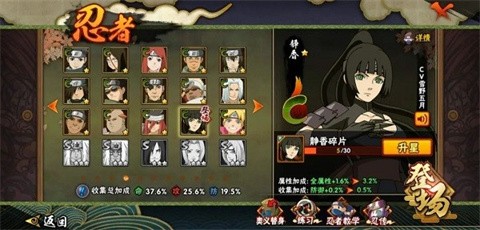 每收一名忍者全员属性上涨,碎片集齐触发忍传额外增益。