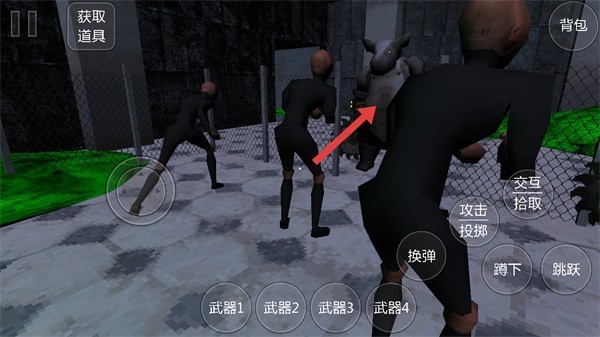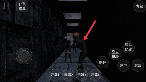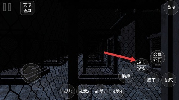 1、游戏开始时,玩家将进入一个偏暗黑风格的场景,屏幕上设有攻击与投掷按钮,可用于打击敌人或投掷物品;同时,通过交互键可拾取道具,而蹲下、跳跃等操作则是躲避攻击或穿越复杂地形的关键生存手段。