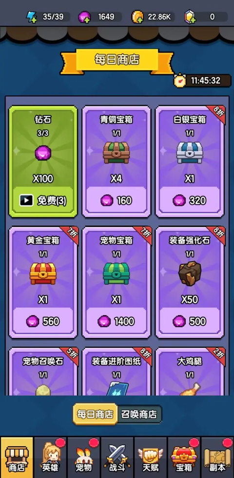 答:钻石可用于购买青铜和黄金宝箱,获取装备和地牢卷,也可用于购买特殊道具。建议通过看广告和参与活动积累钻石,避免盲目使用。
