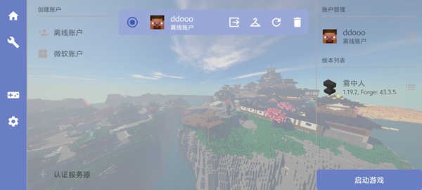 1、打开我的世界雾中人手机版,点击右上角的账户按钮。