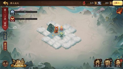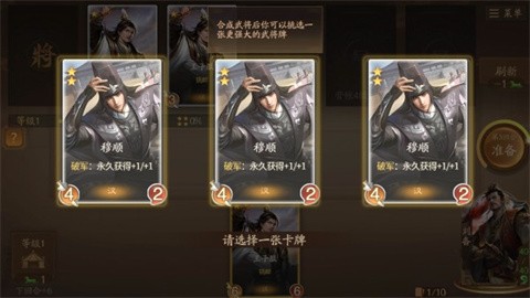 3、开局从随机八将中点将为主,途中偶遇事件可招募副将、拾取宝物、扩充卡牌,甚至触发隐藏试炼。