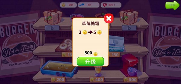 7、回到游戏中,会发现所有厨具和食品都已升级,制作速度会更快。