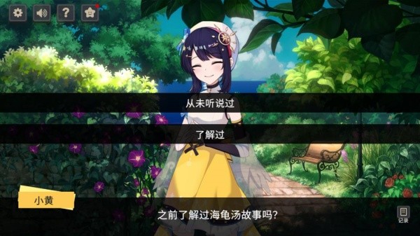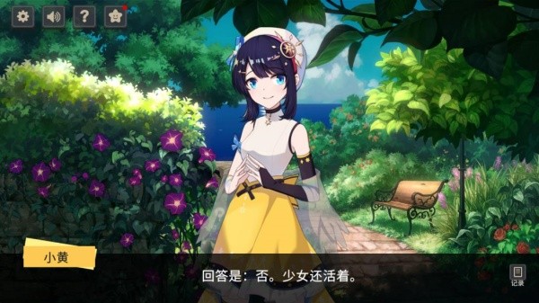 2、进入游戏后,玩家找到长椅旁的少女并与之互动,通过对话来深入了解游戏剧情。