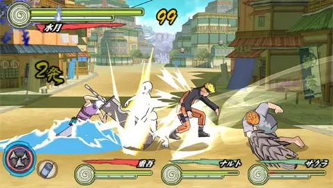 按X。大多数角色仅会投掷一串普通手里剑,实战作用有限(无法打断敌人蓄力忍术,也无法影响处于奥义冲刺状态的对手)。但部分角色如天天、迪达拉、手鞠和油女志乃,牺牲了部分基础攻击性能,强化了手里剑系统——他们的手里剑可像普攻一样进行连段,并通过方向键衍生出挑空或下砸等变招。唯一限制是:手里剑连击无法通过查克拉冲刺取消。