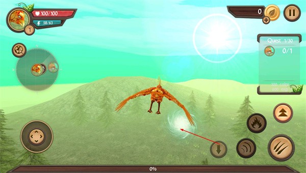 1、进入游戏后,先熟悉虚拟按键的操作方式,通过按键控制凤凰起飞、转向和升降。在初始场景中多练习飞翔,感受凤凰的操控灵活性。