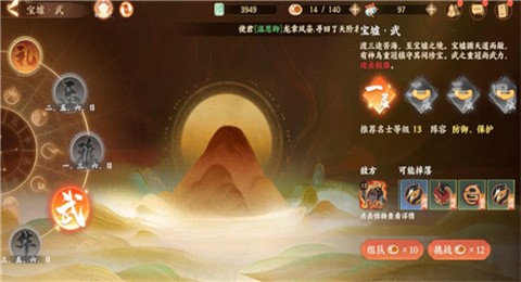 5、第四关宝墟·武,开放时间为周二、周四、周六和周日。本关敌人大多为输出型,BOSS攻击能力极强。使君挑战此关卡时,可采用以防御、控制为主,输出为辅的阵容。若前期使君队伍名士等级远高于敌方,也可直接派出五名输出型名士。战胜本关敌人后,可能掉落踏破套、德盛套、捭阖套灵器。