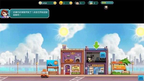 3、游戏中预先设计了一栋公寓和一家商店,玩家需要先点击商店开始销售商品。