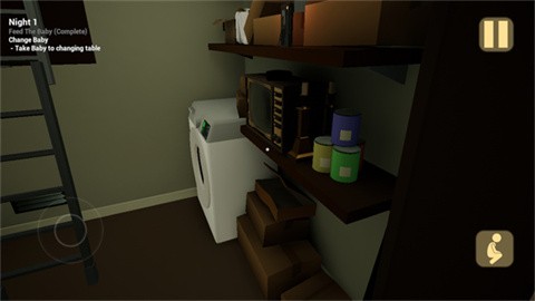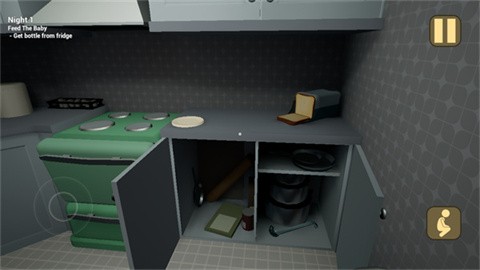 1、寻找逃生出口,玩家需要管理宝宝的吃饭、睡觉等需求,同时探索地图上的各个房间。