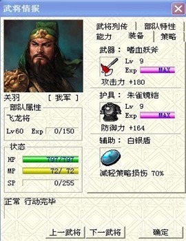 3、然后通过渭水之战打完马超就会进入分支,若此时进入蓝色路线(张鲁投降,诸葛亮被魔化)在麦城救援战之后就可以获得关羽。