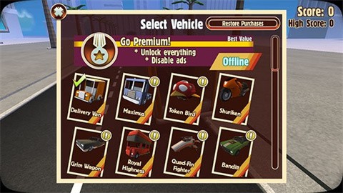 4、选择要驾驶的车型。虽然任何车型都可以通过控制速度获得高分,但根据经验,稳定的大货车和车速快的摩托车更容易取得高分。玩家可以根据自己的喜好进行选择。