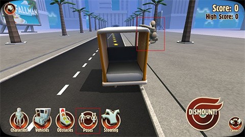 6、选择角色驾驶车辆的姿势。根据车型不同,木头人的姿势分为车内和车外两种。虽然车外姿势看起来更有趣,但建议选择车内姿势,因为车外姿势容易让木头人在中途掉落,导致分数较低。车内姿势则更加稳定。