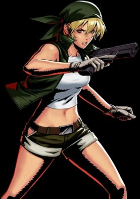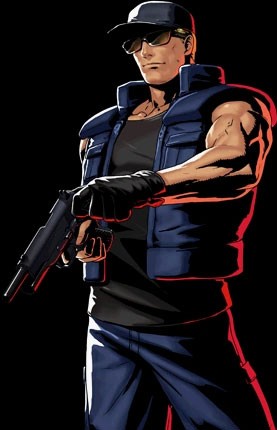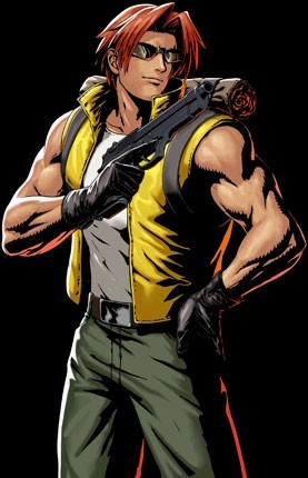 刀砍速度快,攻击范围内的所有敌人都受影响,特技机炮拳破坏速度快(威力5x8,可跳跃取消)。单关内中弹2次才死亡(部分关卡一击必杀)。缺点是走路速度慢(中弹后起身更慢),且获取枪或炸弹时,弹药数量比其他玩家少一半。