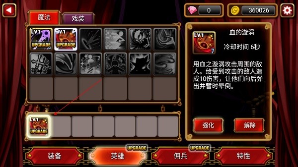 2、在英雄详情页面中,选择魔法标签进入魔法界面。