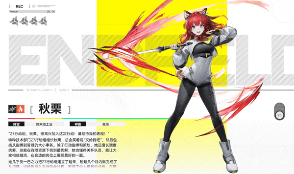 直属管理员的干员,加入终末地前曾独自游历多地,具备极强的独立作战能力。性格沉稳内敛,虽易被误解为疏离,但在实战中总能独当一面。