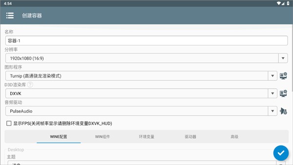 2、选择合适的屏幕分辨率,并设置显存大小(对于配置较低的手机,建议调低显存和分辨率)。