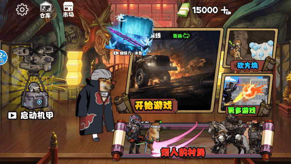 1、启动游戏后进入主界面,直接获取所需资源,提前配置好装备即可开始游戏;