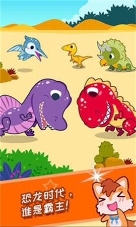 玩家在恐龙侏罗纪公园中通过白垩纪时期与恐龙的亲密接触,Q可爱的小凯融一起战斗玩,有很多种类的恐龙来认知学习,恐龙时代谁是终极霸主,动动手指就可以轻松打开智能的游戏,识别不同的战斗玩法。