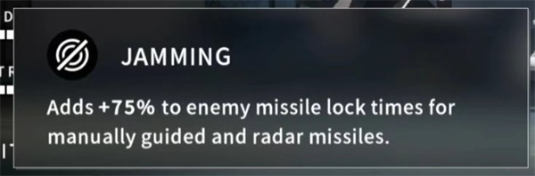 在自己2km内的队友都可以获得该特性,在受到雷达类导弹锁定攻击时增加其75%锁定时间