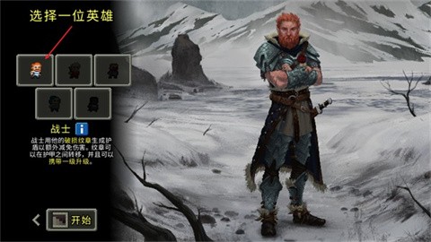 1、进入游戏后,玩家首先需要选择一名英雄。初始阶段,只有战士角色是可以使用的。
