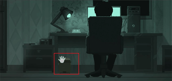 拖动视频画面,点击打翻桌子下的垃圾桶,背后会出现一把伞。