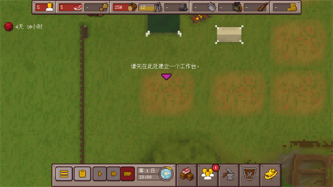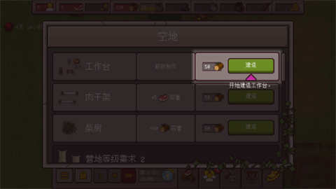 3、为你的幸存者提供生存工具,建造工作台来解锁工艺关卡。