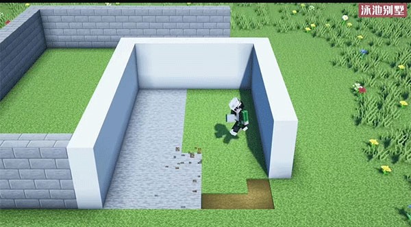 3、接着用纯白混凝土构建泳池的基底轮廓。