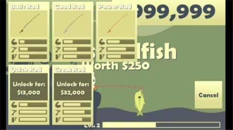 1. 游戏开始时,在左上角的商店中可以购买各类鱼竿。当购买初级鱼竿后,高级鱼竿会自动解锁。