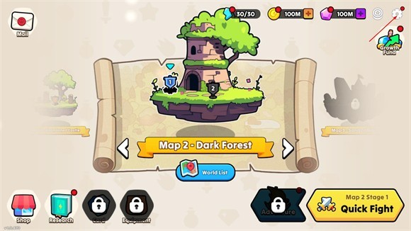 1、进入夜幕王国边境塔防中文版,点击右下角的快速战斗按钮进入关卡。