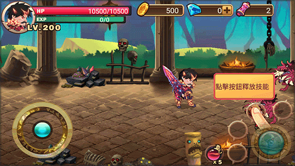 3、点击图示技能按钮即可释放强力技能,该技能可在战斗中造成高额伤害,助你更轻松地攻克关卡。