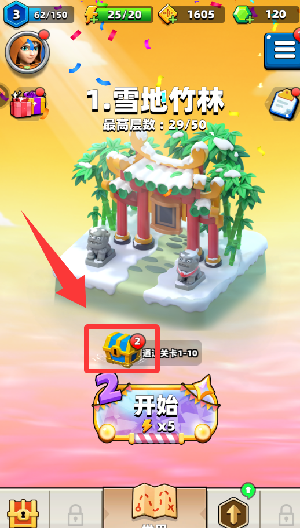 1、进入游戏后,点击界面中红色框内的宝箱图标即可领取奖励。