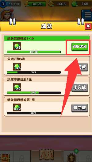 3、在游戏界面中点击“成就”选项,也能领取相应奖励。