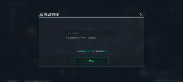 3、填入新昵称(首改免费,之后需消耗改名卡)。